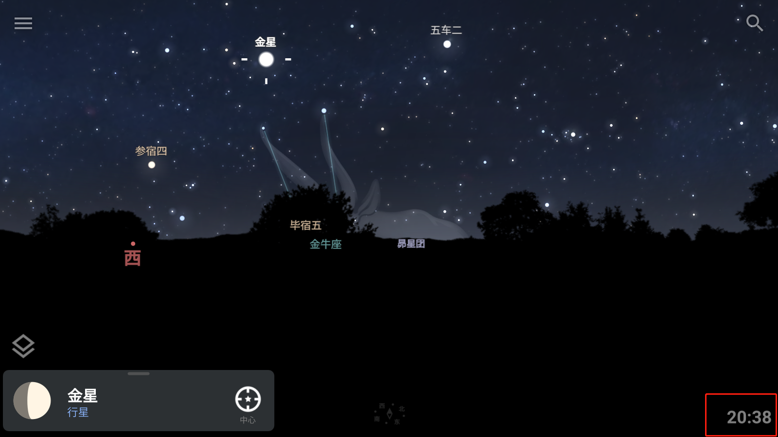 打开和关闭大气模拟,使用此选项可在白天查看星星或停用大气折射。长按可以调整光污染设置以模拟城市天空的天空视图。