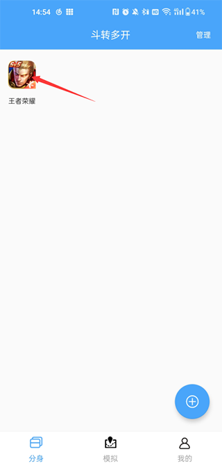 1、在当快下载安装好斗转多开app后,添加分身找到自己想要虚拟定位的软件。小编以王者荣耀为例子;