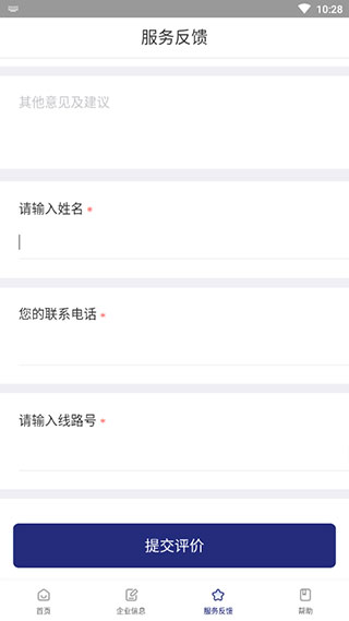2、来到反馈界面后即可为指定项目进行评分并添加投诉意见以及联系电话等,以便于后期工作人员及时联系