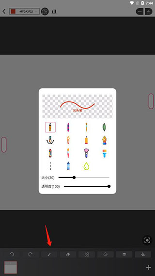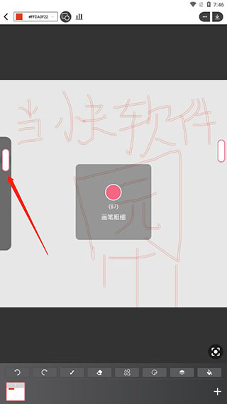 6、想要改变画笔的粗细只要滑动左边的悬浮窗;