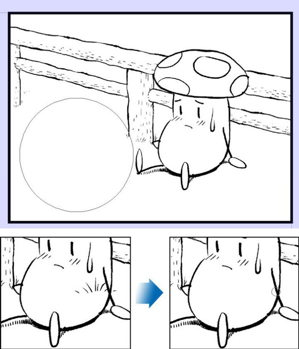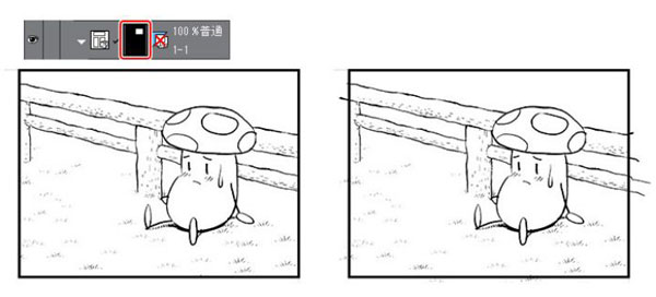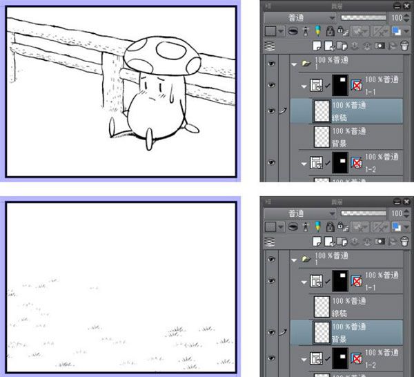 草丛和角色的图层分开,画在不同的图层上。如此一来,即可仅删除草丛部分的线条。