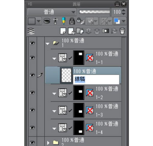 ④接着在此图层进行描线。点两下图层名称,将名称变更为「线稿」。