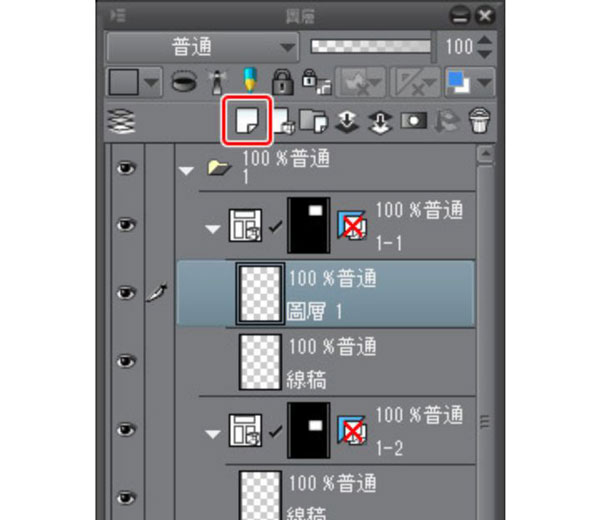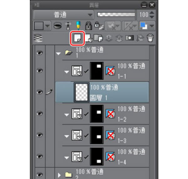 ③点选[图层]面板的[新点阵图层]后,会在选择的[分格边框资料夹]中新建图层。