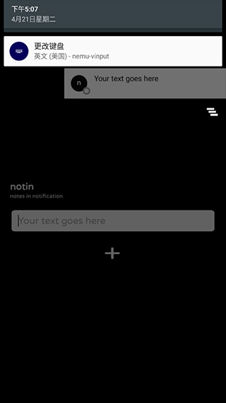2、点击这个加号,输入的便签内容就会自动到手机顶部状态栏里。