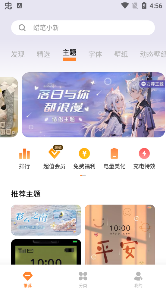 在这里,用户可以浏览主题商店中众多的主题,涵盖不同的风格和类型,如卡通、自然、科技等,用户可以根据自己的喜好和需求,选择并下载自己喜欢的主题,从而应用到自己的手机界面上,为手机带来全新的外观和风格。
