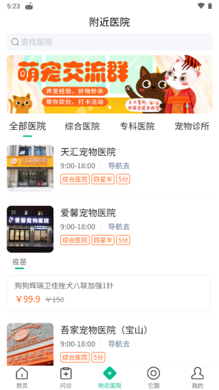 数万家全国知名宠物医院信息,帮你快速查询身边的宠物医院、宠物店。查看宠物医院评分,帮你找到最好、最靠谱的宠物医院、宠物医生、宠物服务。为爱宠的衣食住用行医全面把关。