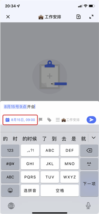 * 语音输入时,内容包含时间等特殊信息会被智能识别成为任务的截止日期与提醒时间。例如:明早十点开会。
