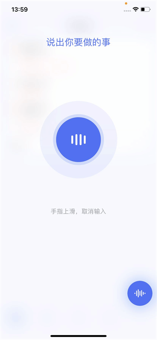 长按「+」按钮,启动语音输入,当看到界面提示「说出你要做的事」时,说话创建任务,松手即可完成语音输入。
