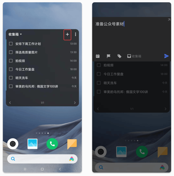 滴答清单还支持通过「小组件」添加任务,你可以点击小组件上的「+」,直接进入添加任务界面,即可快速添加任务。