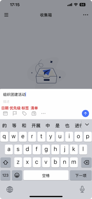 你还可以为任务设置「日期」、「优先级」、「标签」,以及将任务移到「清单」中。
