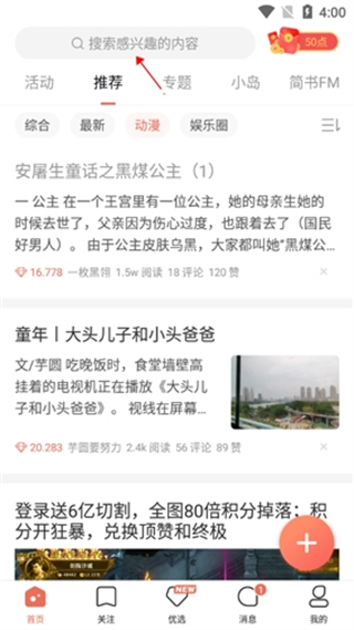 简书是一款非常好用的兴趣文章软件。这款软件将为用户带来大量的兴趣文章,让用户可以更好的找到自己喜欢的内容,用户只需要通过软件自带的搜索功能就可以找打自己喜欢的文章了。
