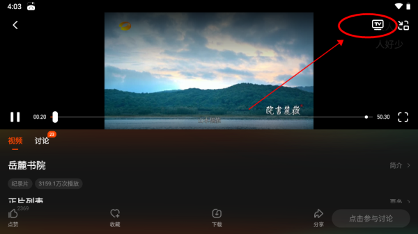3、点击视频任意位置,弹出下图窗口,点击右上角投屏图标;