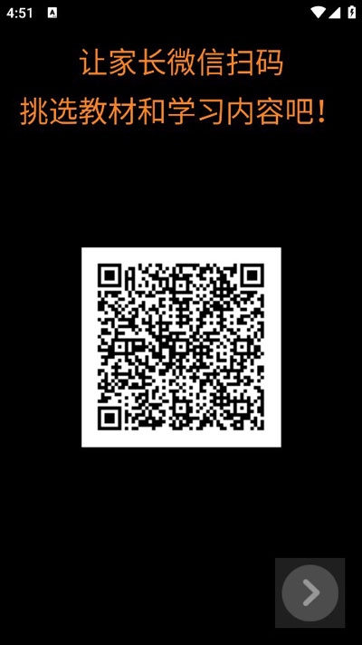 1、打开手表版新华字典后会弹出一个二维码,让家长扫码挑选教材和学习内容