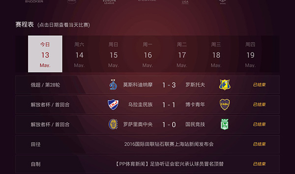 拥有独家资源的西甲版块,分类丰富并且详尽。赛程分类更是详细地为用户展示了最近体育赛程的排期,简单明了,用户可根据自己的喜好去选择观看已经结束或者正在直播的比赛节目。