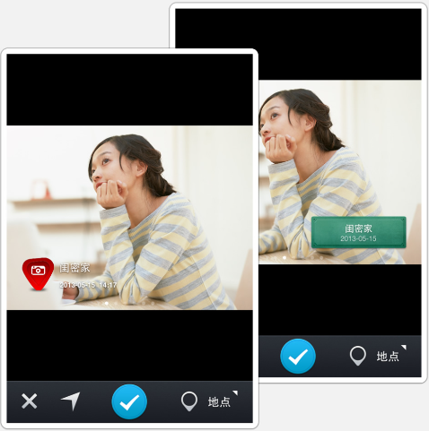 2、智能的水印模版:天气、地点、时间、分贝、海拔、速度,智能水印自动添加到照片上。