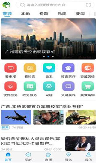 1、首页新闻:热点推荐,本地新闻,学习党政。2、高清直播:高清活动直播,直连现场精彩。