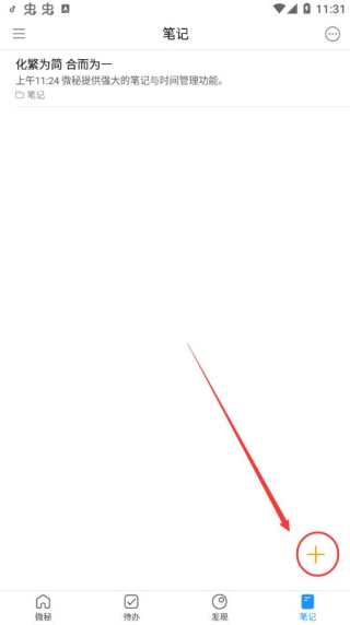 3、点击下方菜单栏中的笔记,单击右下角的加号打开新建笔记菜单,长按可以添加语音闪记