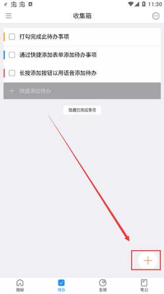 2、点击下方菜单栏中的待办,单击右下角加号添加新待办,双击可以通过语音添加待办