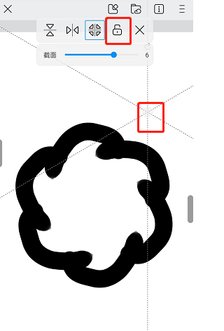 如果想要移动对称轴,可以点击虚线中灰色的小圆点,然后拖动即可,如果想要锁定当前对称轴,点击工具栏中的锁图标,这样对称轴就无法被移动了。