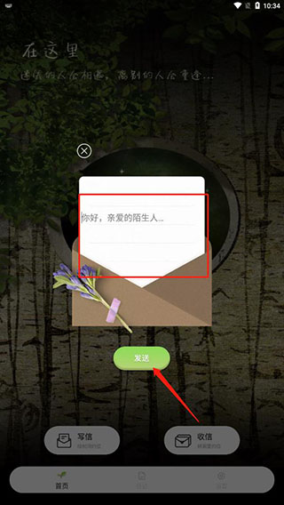 1、如果你想要倾诉,那么可以在首页中点击写信;