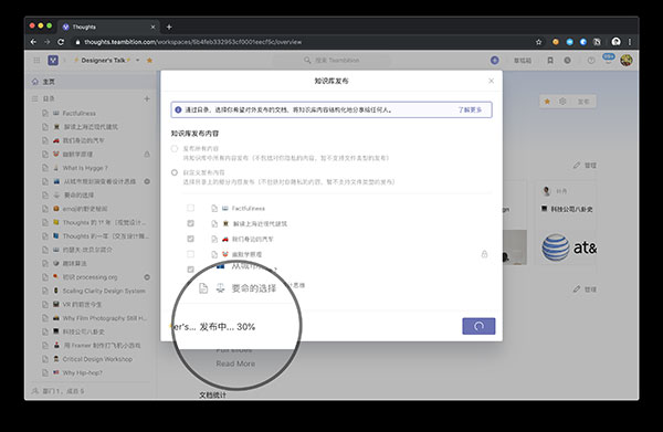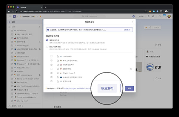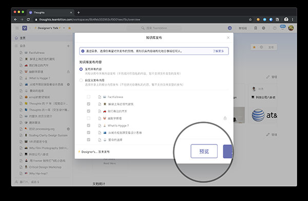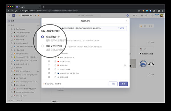 我们接下来演示一下网页端发布流程1、从知识库主页发布入口进入配置