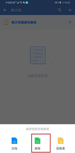 5、返回微文档界面之后,可以看到已经新建表格了,如下图所示: