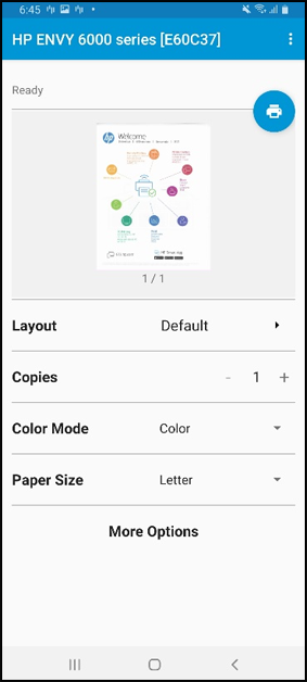 显示“预览”界面。选择打印机,更改任何所需的打印设置,然后点击打印。