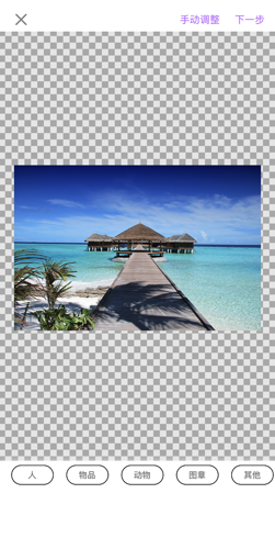7、如果用户们选择的是AI抠图,则在导入图片后,我们需要点击下方显示的人、物品、动物、图章、其他、室内、室外来挑选图片中需要抠选的主体。