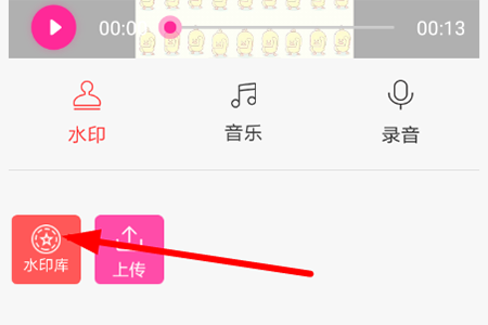 5、首先我们还是需要进行视频素材的导入,导入完成之后选择下方的“水印库”选项,找到自己感兴趣的水印模板,通过编辑之后就可以进行添加了!