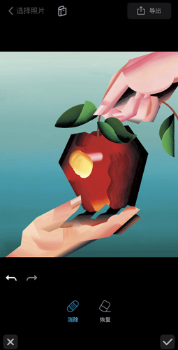 7、完成后,点击右下角的勾,保存效果后再点击右上角的导出将此图片保存即可。