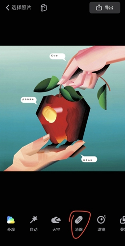 4、进入主界面从相册中选择图片导入,然后点击底部工具栏的“消除”按钮。
