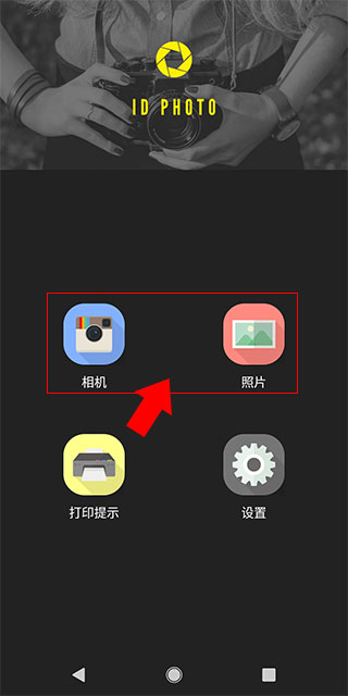 1、下载并打开软件,如果想要现场拍摄那么点击相机按钮,如果想要现有照片制作那么点击照片选项