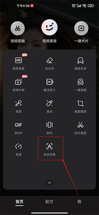 1、在首页找到自动字幕