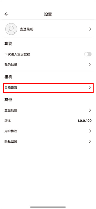 2、接着在【相机】栏点击【自拍设置】;