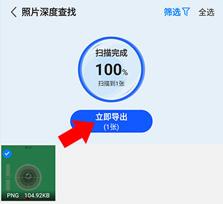 6、最后点击选中需要恢复的照片点击立即导出即可