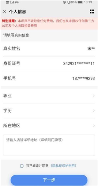 到这一步之后,需要补充自己的一些信息,因为账号是已经完成实名认证的,所以身份证,收款银行卡已经默认为京东账号内的信息。
