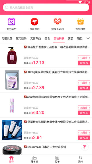 4、专属回扣优惠券让你回扣返利翻翻翻。