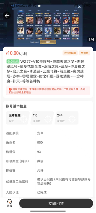 原生租号app是一款专业的游戏租号平台,提供诸多热门游戏账号租赁,满皮肤、高强度账号应有尽有,例如主流的游戏王者荣耀、和平精英、CF手游、英雄联盟、LOL手游、吃鸡、火影忍者、Steam游戏……无论是单机游戏,还是手游全都囊括其中,最大程度上满足你的租号需求。为了避免未成年人租号玩游戏,原生租号app还需要实名认证,认证成年后方可租号进行体验游戏乐趣。