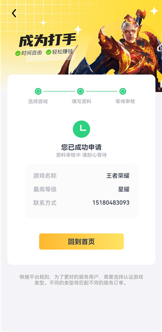 3、将游戏的最高等级、联系方式、最高段位截图信息完善后点击提交审核;