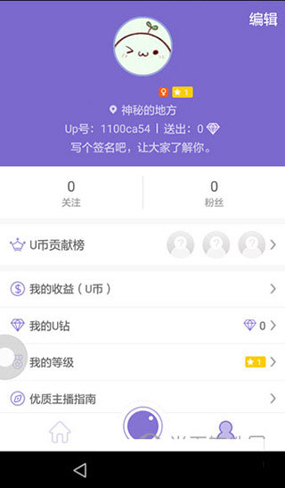 3、点击个人按钮,就可以进入到个人中心,就可以查看自己的收益,还可以直接充值U钻等等。