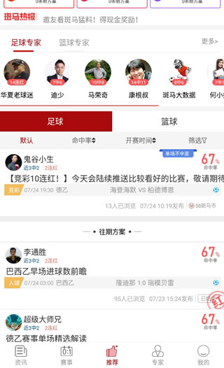 4、专家预测:专业的人士为你进行一个比分的预测、帮你更轻松的猜中比分。