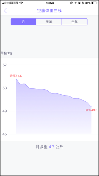 同步智能健康秤数据,生成详细的测评报告、健康曲线、记步减脂路上的点滴成就。