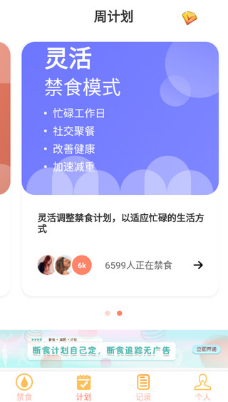 断食追踪会根据你的断食时间记录, 给你一个专业的断食方案。