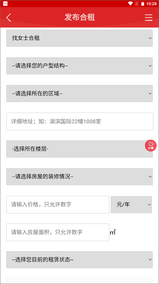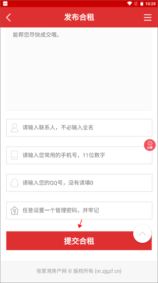 3、输入你合租的要求,房屋的具体信息,以及你个人的联系方式,最后提交合租即可发布成功。