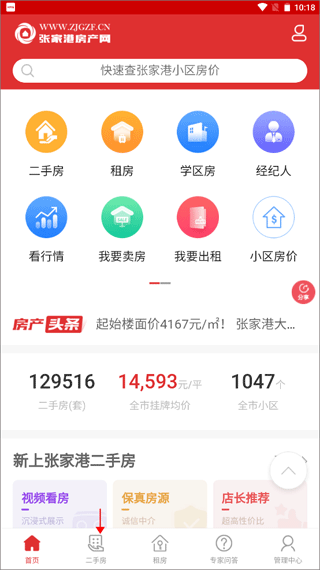 1、打开app并进入到【首页】,点击切换到【二手房】界面。