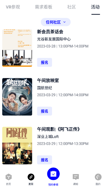 2、点击发现,有各种社区资讯和社区活动,你可以了解和参加。