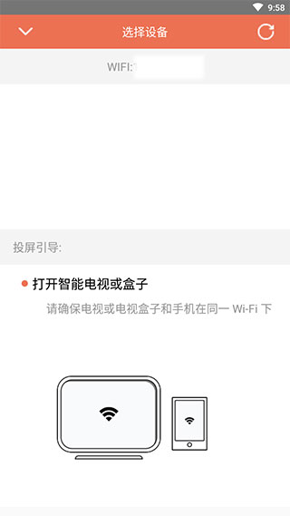 3、手机上就会显示在同一局域网内的电视设备,选择对应的电视设备进行连接即可。