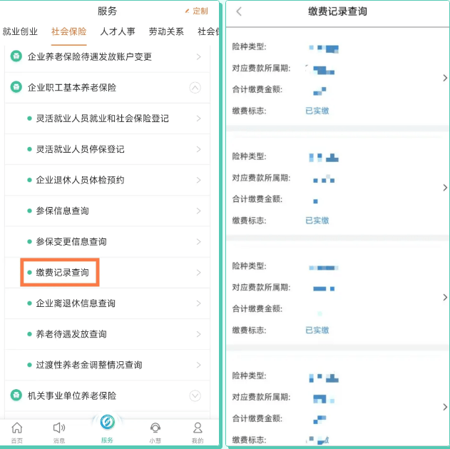5.点击“缴费记录查询”,即可查询本人相应险种缴费金额及缴费状态。