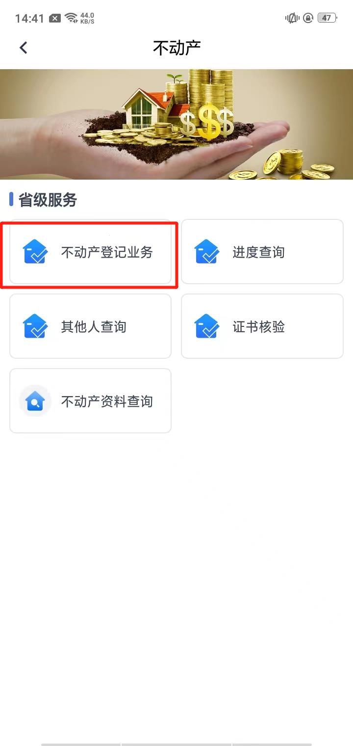 1、首先,在本站下载并安装好之后,打开app,点击【不动产】;