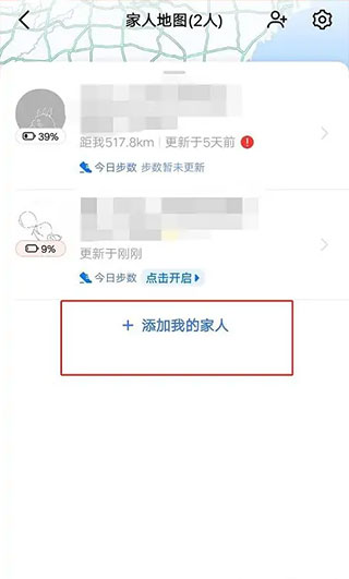 点击家人地图打开高德地图,点击我的,点击家人地图。